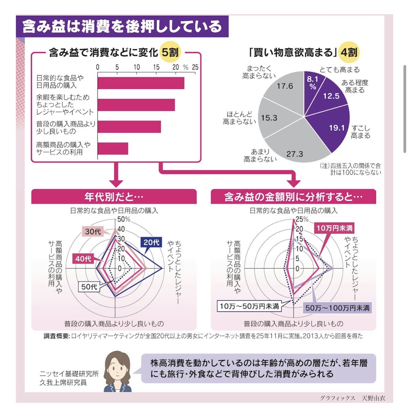 「含み益で消費意欲が高まる。富裕層ではない層でも“プチご褒美消費”が増加」