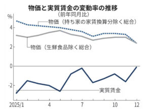 物価の上昇が賃金の上昇を上回っている。