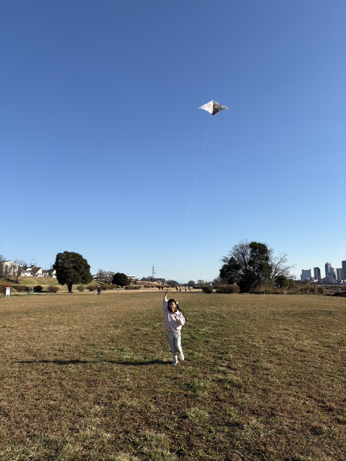 ↑頑張って走って凧揚げする娘🪁